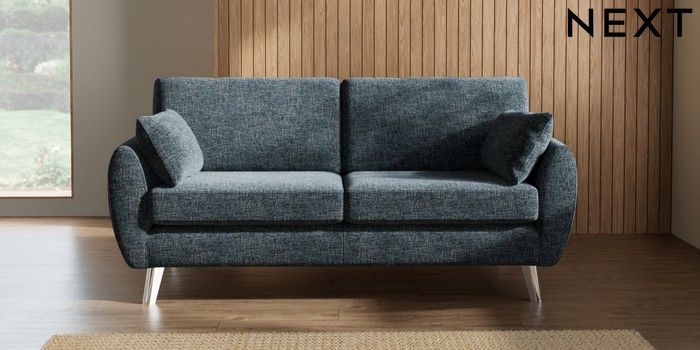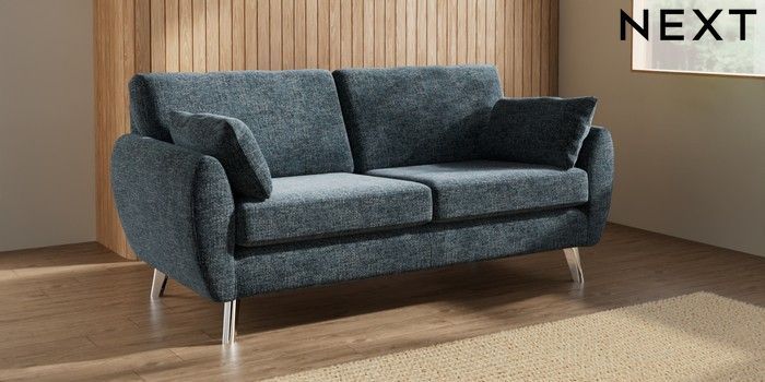 7.3.1 Buy Wilson 3 Seater Small Sofa Chunky Chenille Dark Navy Blue Metal Tapered - Chrome from the Laura Ashley online shop