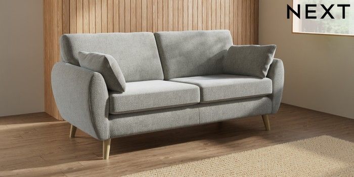 7.3.1 Buy Wilson 3 Seater Small Sofa Chunky Chenille Light Grey Retro Tapered - Light from the Laura Ashley online shop