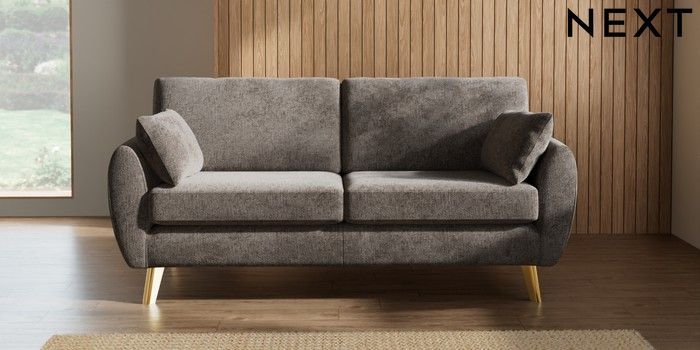 7.3.1 Buy Wilson 3 Seater Small Sofa Chunky Chenille Mink Brown Metal Tapered - Gold from the Laura Ashley online shop