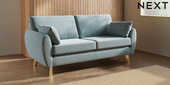 7.3.1 Buy Wilson 3 Seater Small Sofa Chunky Marl Mid Blue Metal Tapered - Gold from the Laura Ashley online shop