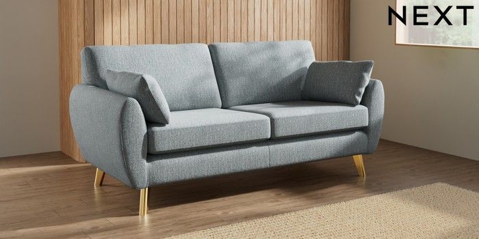 7.3.1 Buy Wilson 3 Seater Small Sofa Chunky Weave Mid Blue Metal Tapered - Gold from the Laura Ashley online shop