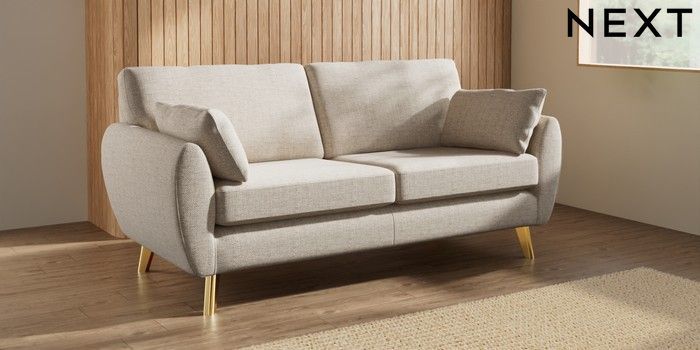 7.3.1 Buy Wilson 3 Seater Small Sofa Chunky Weave Mid Natural Metal Tapered - Gold from the Laura Ashley online shop