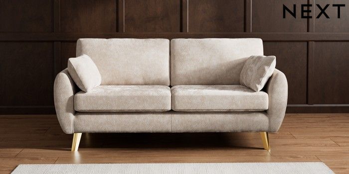 7.3.1 Buy Wilson 3 Seater Small Sofa Distressed Velour Mid Natural Metal Tapered - Gold from the Laura Ashley online shop