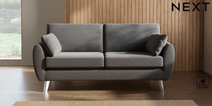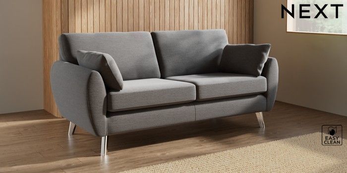 7.3.1 Buy Wilson 3 Seater Small Sofa Fine Chenille Easy Clean Dark Smoke Grey Metal Tapered - Chrome from the Laura Ashley online shop