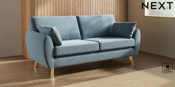7.3.1 Buy Wilson 3 Seater Small Sofa Fine Chenille Easy Clean Mid Blue Metal Tapered - Gold from the Laura Ashley online shop