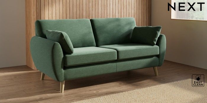 7.3.1 Buy Wilson 3 Seater Small Sofa Fine Chenille Easy Clean Mid Khaki Green Retro Tapered - Light from the Laura Ashley online shop