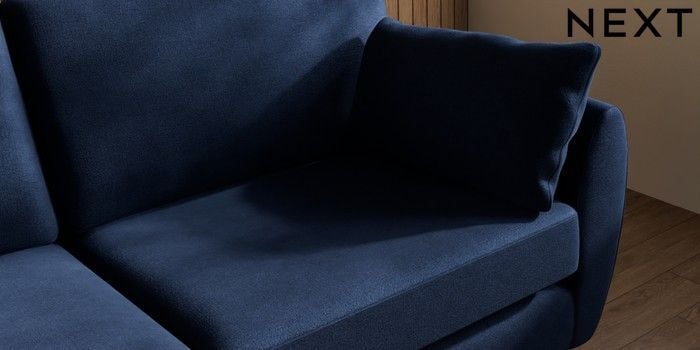 7.3.1 Buy Wilson 3 Seater Small Sofa Luxe Chenille Navy Blue Metal Tapered - Gold from the Laura Ashley online shop