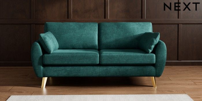 7.3.1 Buy Wilson 3 Seater Small Sofa Plush Chenille Dark Teal Green Metal Tapered - Gold from the Laura Ashley online shop