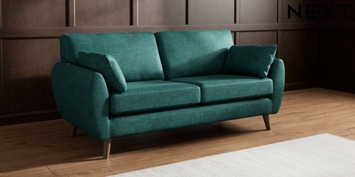7.3.1 Buy Wilson 3 Seater Small Sofa Plush Chenille Dark Teal Green Retro Tapered - Mid from the Laura Ashley online shop