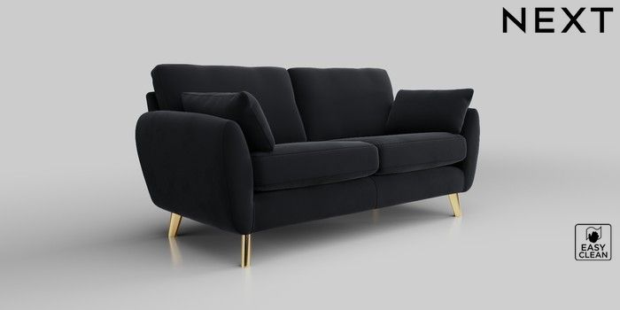 6.12.1 Buy Wilson 3 Seater Small Sofa Plush Velvet Easy Clean Charcoal Grey Metal Tapered - Gold from the Laura Ashley online shop Click here to use our website with more accessibility support, for example screen readers