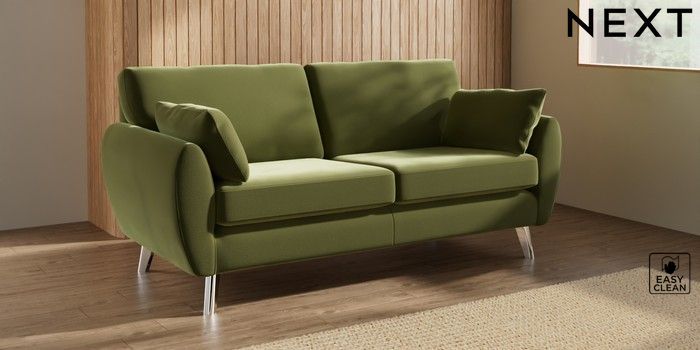 7.3.1 Buy Wilson 3 Seater Small Sofa Plush Velvet Easy Clean Mid Olive Green Metal Tapered - Chrome from the Laura Ashley online shop