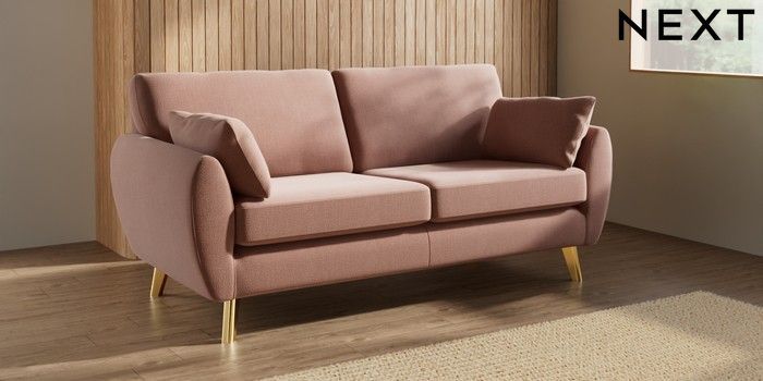 7.3.1 Buy Wilson 3 Seater Small Sofa Relaxed Linen Look Light Rust Brown Metal Tapered - Gold from the Laura Ashley online shop