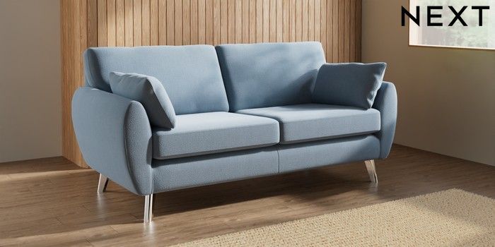 7.3.1 Buy Wilson 3 Seater Small Sofa Relaxed Linen Look Mid Blue Metal Tapered - Chrome from the Laura Ashley online shop