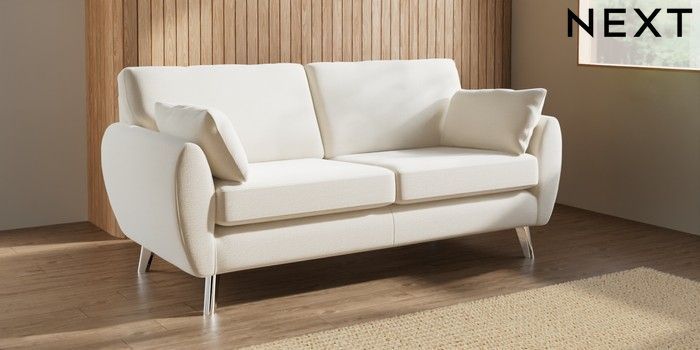 7.3.1 Buy Wilson 3 Seater Small Sofa Ripple Chenille Oyster Metal Tapered - Chrome from the Laura Ashley online shop
