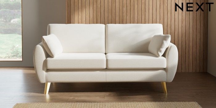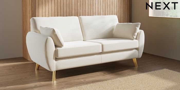 7.3.1 Buy Wilson 3 Seater Small Sofa Ripple Chenille Oyster Metal Tapered - Gold from the Laura Ashley online shop