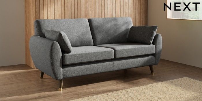 7.3.1 Buy Wilson 3 Seater Small Sofa Tweedy Chenille Dark Grey Low Retro Tapered Metal Cap - Mid from the Laura Ashley online shop