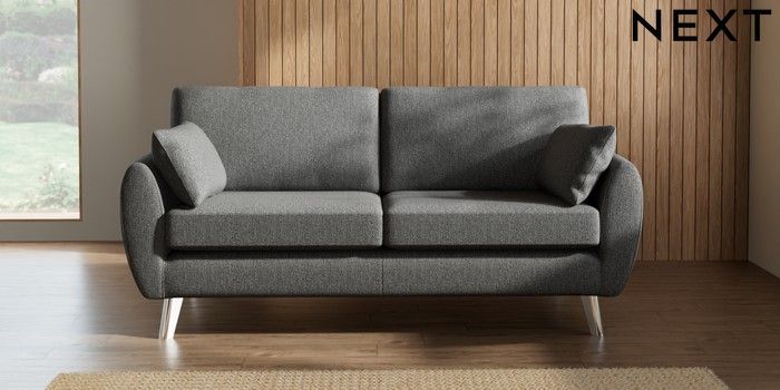7.3.1 Buy Wilson 3 Seater Small Sofa Tweedy Chenille Dark Grey Metal Tapered - Chrome from the Laura Ashley online shop