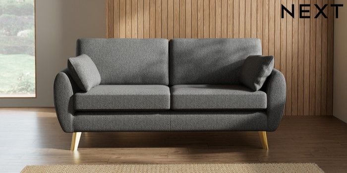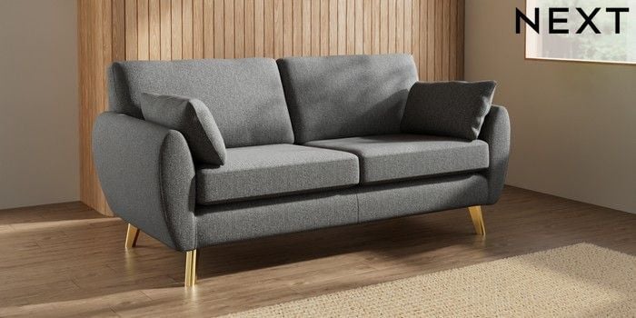 7.3.1 Buy Wilson 3 Seater Small Sofa Tweedy Chenille Dark Grey Metal Tapered - Gold from the Laura Ashley online shop