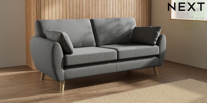 7.3.1 Buy Wilson 3 Seater Small Sofa Tweedy Chenille Dark Grey Retro Tapered - Light from the Laura Ashley online shop