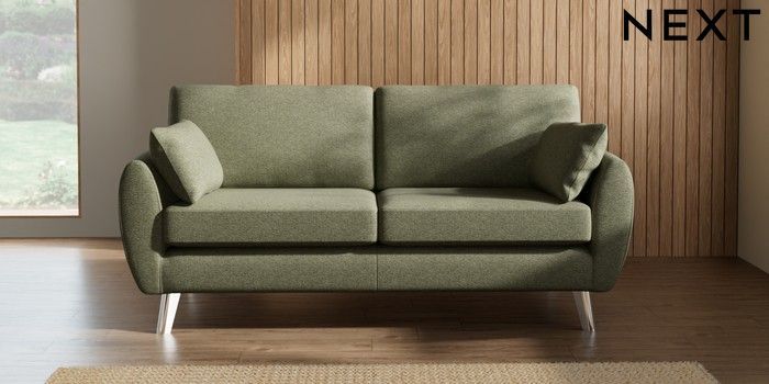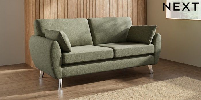 7.3.1 Buy Wilson 3 Seater Small Sofa Tweedy Chenille Mid Moss Green Metal Tapered - Chrome from the Laura Ashley online shop