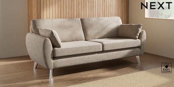 7.3.1 Buy Wilson 3 Seater Sofa Chunky Boucle Easy Clean Mid Natural Metal Tapered - Chrome from the Laura Ashley online shop