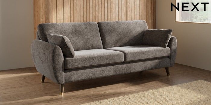 7.3.1 Buy Wilson 3 Seater Sofa Chunky Chenille Mink Brown Low Retro Tapered Metal Cap - Mid from the Laura Ashley online shop