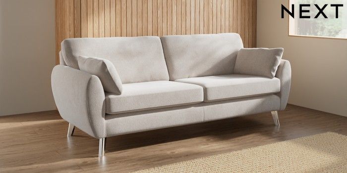 7.3.1 Buy Wilson 3 Seater Sofa Chunky Chenille Oyster Metal Tapered - Chrome from the Laura Ashley online shop