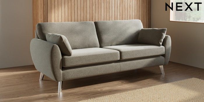 7.3.1 Buy Wilson 3 Seater Sofa Chunky Marl Light Olive Green Metal Tapered - Chrome from the Laura Ashley online shop