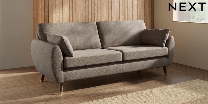 7.3.1 Buy Wilson 3 Seater Sofa Chunky Weave Dark Natural Low Retro Tapered Metal Cap - Mid from the Laura Ashley online shop
