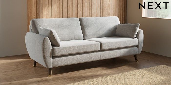 7.3.1 Buy Wilson 3 Seater Sofa Chunky Weave Dove Grey Low Retro Tapered Metal Cap - Mid from the Laura Ashley online shop