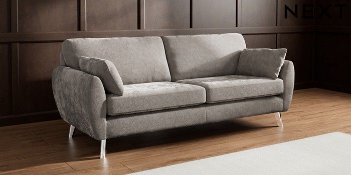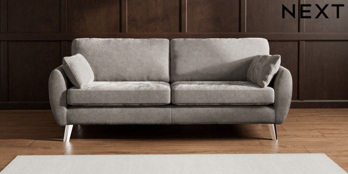 7.3.1 Buy Wilson 3 Seater Sofa Distressed Velour French Grey Metal Tapered - Chrome from the Laura Ashley online shop