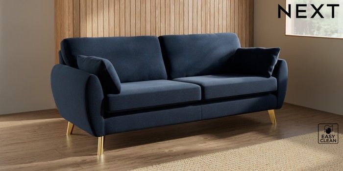 7.3.1 Buy Wilson 3 Seater Sofa Fine Chenille Easy Clean Dark Navy Blue Metal Tapered - Gold from the Laura Ashley online shop