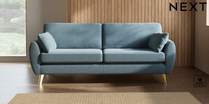 7.3.1 Buy Wilson 3 Seater Sofa Fine Chenille Easy Clean Mid Blue Metal Tapered - Gold from the Laura Ashley online shop