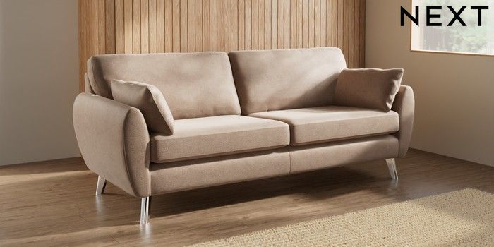 7.3.1 Buy Wilson 3 Seater Sofa Luxe Chenille Mid Natural Metal Tapered - Chrome from the Laura Ashley online shop