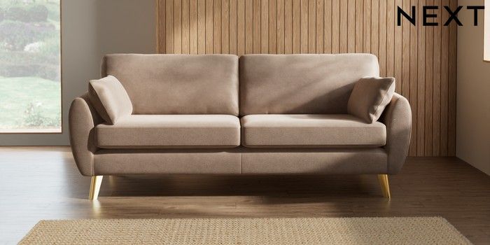 7.3.1 Buy Wilson 3 Seater Sofa Luxe Chenille Mid Natural Metal Tapered - Gold from the Laura Ashley online shop