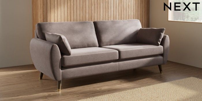 7.3.1 Buy Wilson 3 Seater Sofa Luxe Chenille Mink Brown Low Retro Tapered Metal Cap - Mid from the Laura Ashley online shop