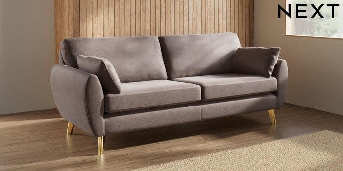 7.3.1 Buy Wilson 3 Seater Sofa Luxe Chenille Mink Brown Metal Tapered - Gold from the Laura Ashley online shop