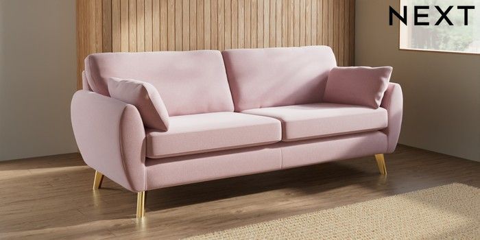 7.3.1 Buy Wilson 3 Seater Sofa Natural Mix Light Rose Pink Metal Tapered - Gold from the Laura Ashley online shop