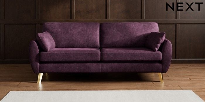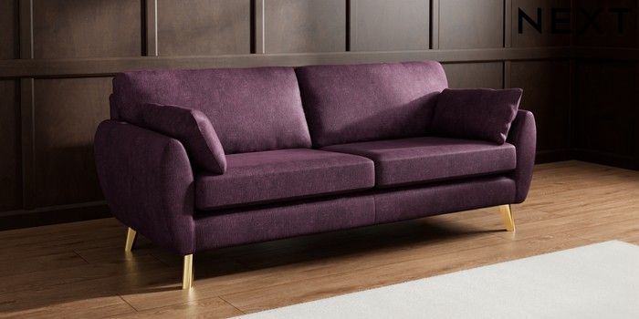 7.3.1 Buy Wilson 3 Seater Sofa Plush Chenille Dark Plum Purple Metal Tapered - Gold from the Laura Ashley online shop