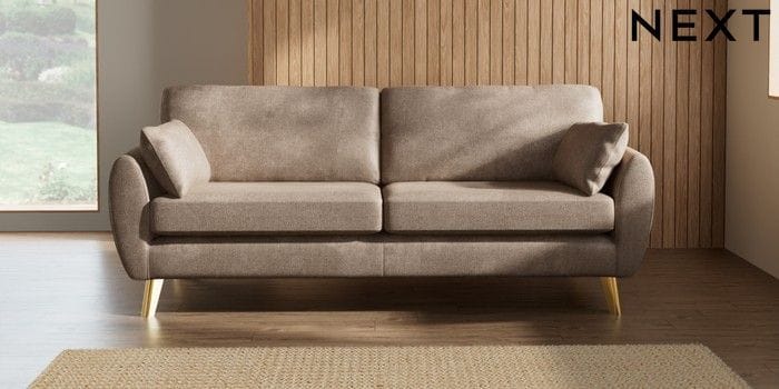 7.3.1 Buy Wilson 3 Seater Sofa Plush Chenille Mid Natural Metal Tapered - Gold from the Laura Ashley online shop