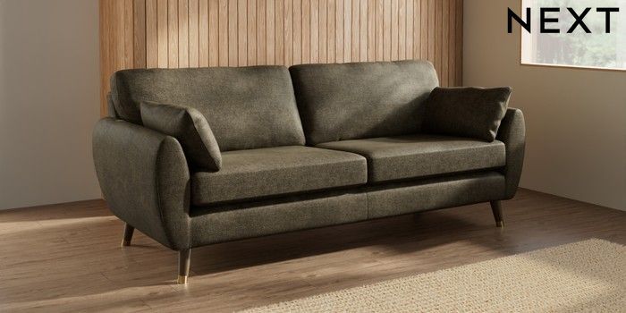 7.3.1 Buy Wilson 3 Seater Sofa Plush Chenille Moss Green Low Retro Tapered Metal Cap - Mid from the Laura Ashley online shop