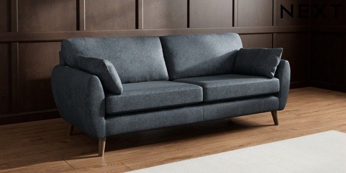 7.3.1 Buy Wilson 3 Seater Sofa Plush Chenille Slate Blue Retro Tapered - Mid from the Laura Ashley online shop