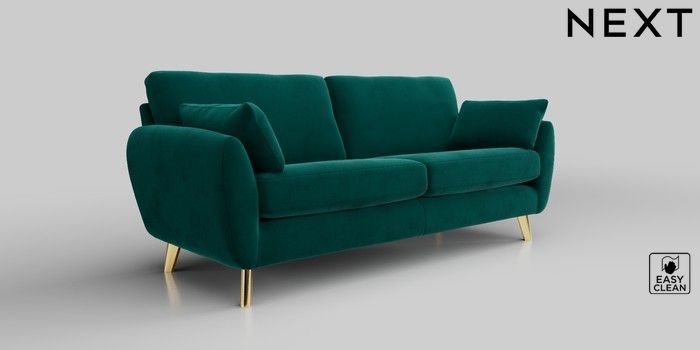6.12.1 Buy Wilson 3 Seater Sofa Plush Velvet Easy Clean Juniper Green Metal Tapered - Gold from the Laura Ashley online shop Click here to use our website with more accessibility support, for example screen readers