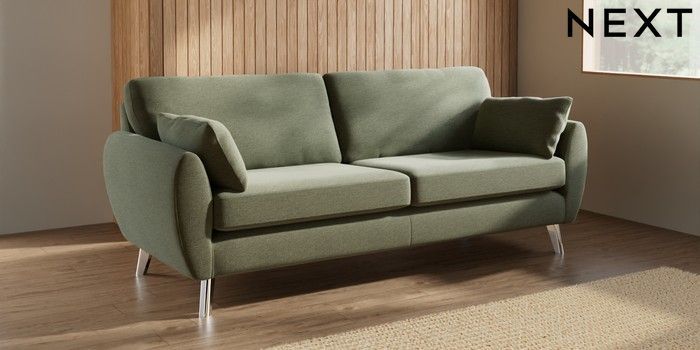 7.3.1 Buy Wilson 3 Seater Sofa Ripple Chenille Mid Moss Green Metal Tapered - Chrome from the Laura Ashley online shop