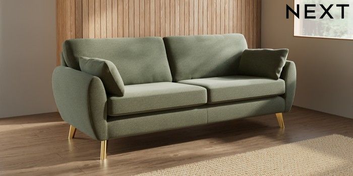 7.3.1 Buy Wilson 3 Seater Sofa Ripple Chenille Mid Moss Green Metal Tapered - Gold from the Laura Ashley online shop