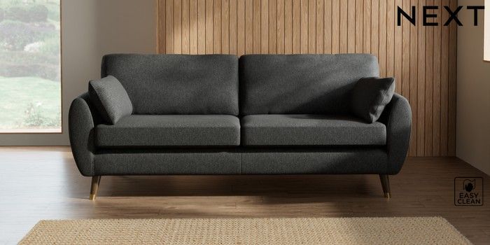 7.3.1 Buy Wilson 3 Seater Sofa Tweedy Blend Easy Clean Charcoal Grey Low Retro Tapered Metal Cap - Mid from the Laura Ashley online shop