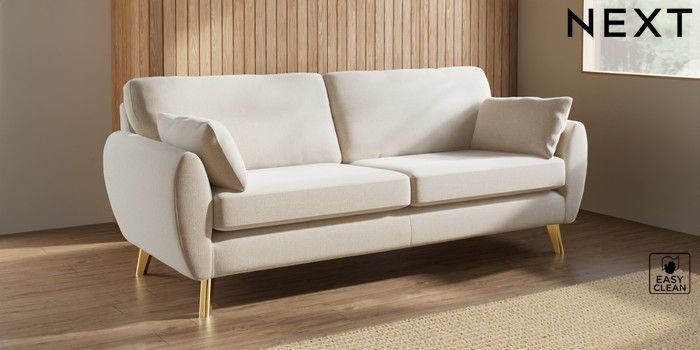 7.3.1 Buy Wilson 3 Seater Sofa Tweedy Blend Easy Clean Oyster Metal Tapered - Gold from the Laura Ashley online shop