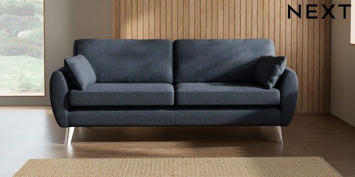 7.3.1 Buy Wilson 3 Seater Sofa Tweedy Chenille Navy Blue Metal Tapered - Chrome from the Laura Ashley online shop