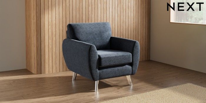 7.3.1 Buy Wilson Armchair Boucle Chenille Dark Slate Blue Metal Tapered - Chrome from the Laura Ashley online shop