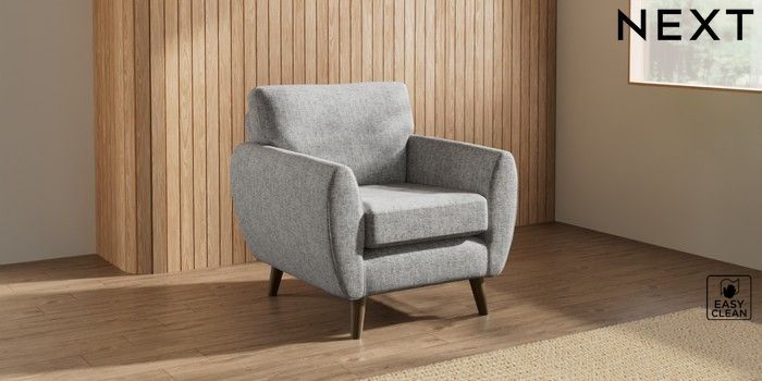 7.3.1 Buy Wilson Armchair Chunky Boucle Easy Clean Light Grey Retro Tapered - Mid from the Laura Ashley online shop